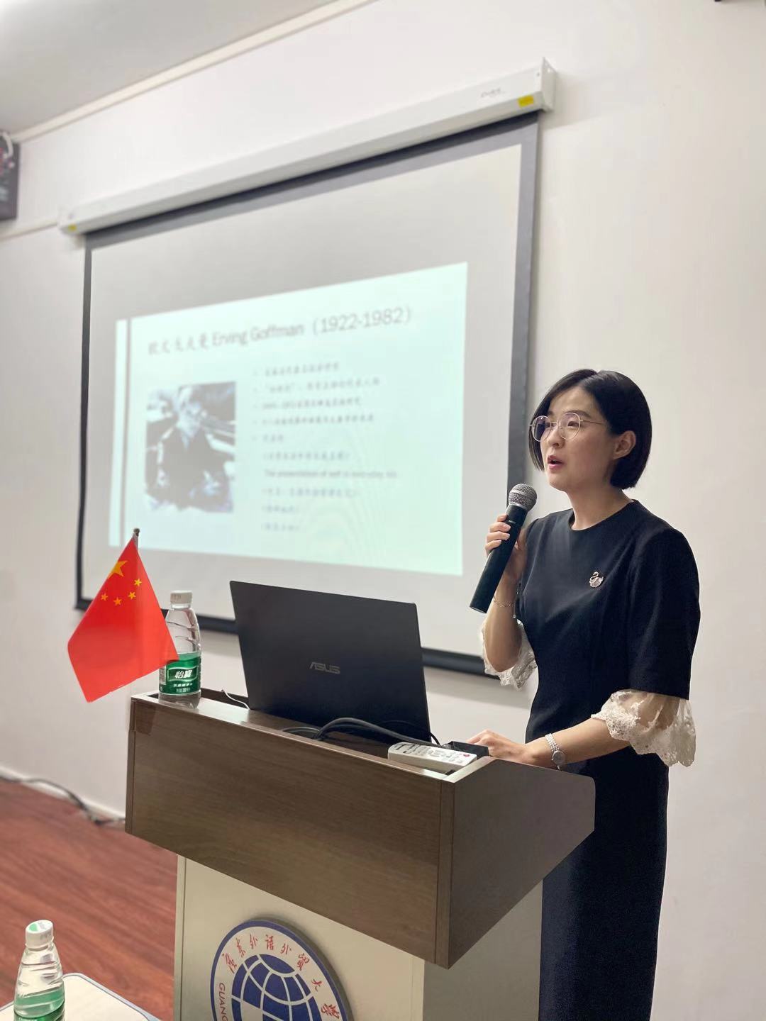 万婧首先介绍了研读这本书的方法和思路,结合个体的研究视角展开对本书叙述,梳理书里的核心观点和关键概念,具体介绍了“表演”理论与日常生活,“剧班共谋”与角色沟通以及社交媒体中的自我呈现与印象管理三方面的内容,结合“凡尔赛”的秘密、“Crazy Presentation University”的生存法则和朋友圈达人养成术等学生关注的热点话题进行文本的适用性解析。