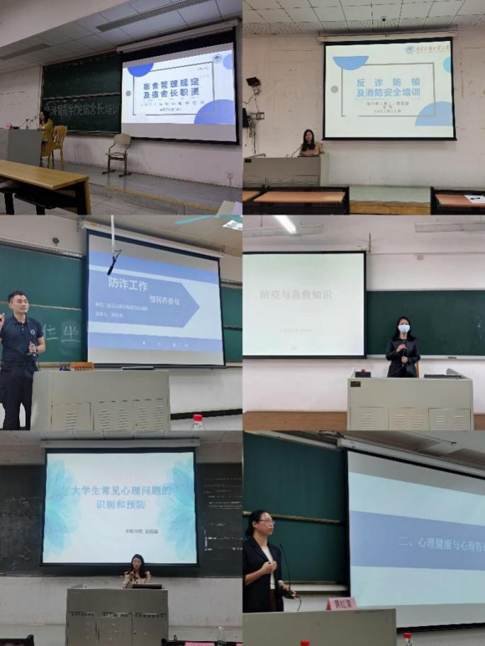 针对学生宿舍安全管理培训,商英学院和会计学院开展兼具专业性与趣味性的宿舍安全培训活动,将安全知识教育融入宿舍长培训中,深化宿舍的安全管理;商学院、信息学院和数统学院针对预防流行病、疫情防控、防火用电安全和防范诈骗等问题,讲解了维护宿舍安全的预防措施;强调了宿舍长维护宿舍安全的重要性。