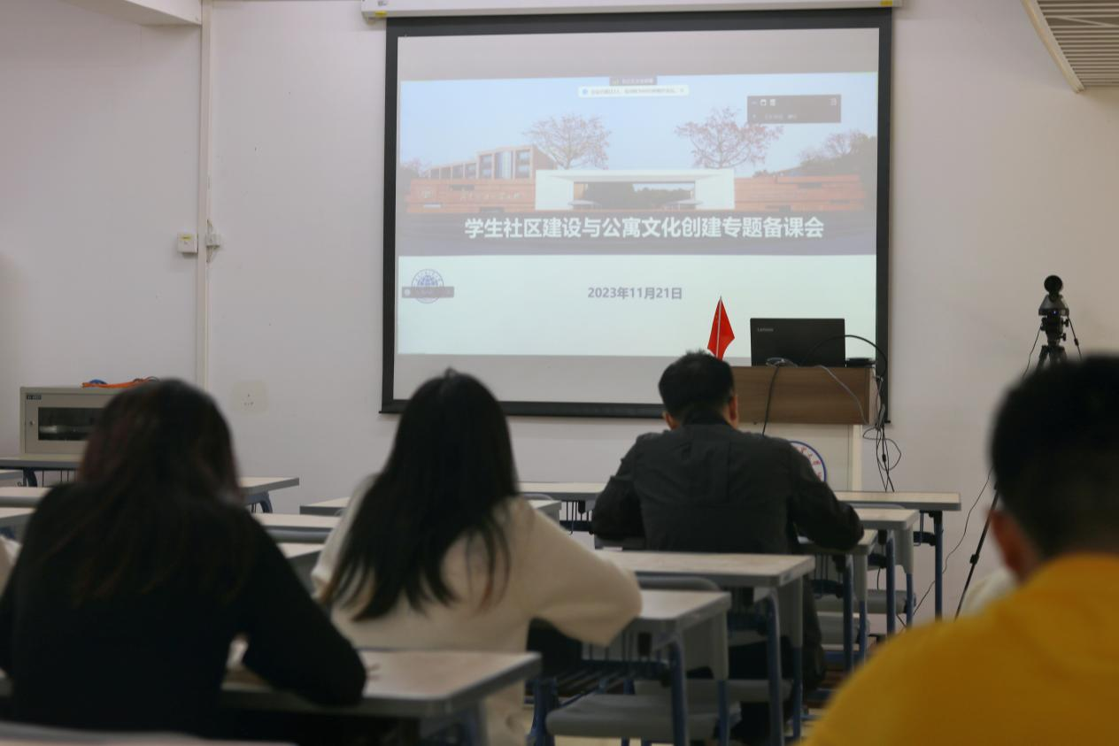 为推进“一站式”学生社区综合管理模式建设,创建和谐平安的公寓文化,提高宿舍长的管理能力,学生工作部在11月中下旬组织开展全校宿舍长培训,并于2023年11月21日上午,在白云山校区六教B108会议室和大学城校区明德书院同步开展学生社区建设与公寓文化创建专题备课会。学生工作部副部长毕建永、学生管理科科长殷毅山、学生自律委员会指导老师李智聪、刘晓琪以及各学院授课老师出席会议。
