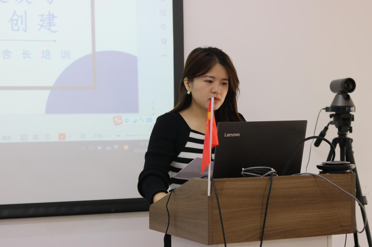 刘晓琪从宿舍长角色定位与工作职责、如何建立良好宿舍关系、学生宿舍管理须知、学生信息反馈等方面介绍了授课内容。她分析了每一维度的授课重点,并建议授课老师将校内学生社区管理案例融入培训,并根据学院管理特色、学生特点、工作规划优化课程内容,帮助宿舍长强化责任意识,提高管理能力,形成宿舍长带动舍友自觉遵守校内相关管理规定、参与宿舍文化建设活动的良好氛围。