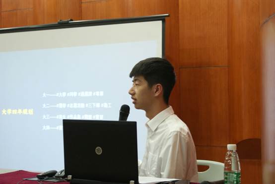 国家励志奖学金获得者代表肖承真分享自己大学四年的规划以及实习经历,提醒师弟师妹们要加强时间观念和沟通能力,进一步提高英语水平。