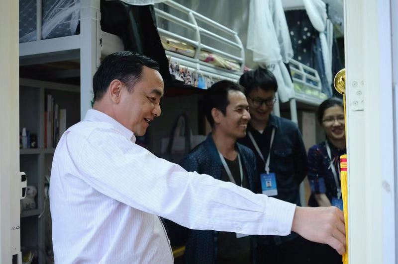 他认为抓好基础工作至关重要,要将思想政治教育贯穿于学生的教育、管理、指导和服务之中,辅导员马骁老师谈到:“何书记经常叮嘱我们,学生在哪里我们就在哪里,像宿舍、课室、操场、甚至是饭堂或是活动现场,都是需要我们和学生相互交流的场合,他规定我们每个星期都要去走访学生宿舍。”辅导员王晞老师讲:“何书记有很强的主业意识,非常重视学生的安全教育和心理健康教育,特别强调思想引领的作用。”
