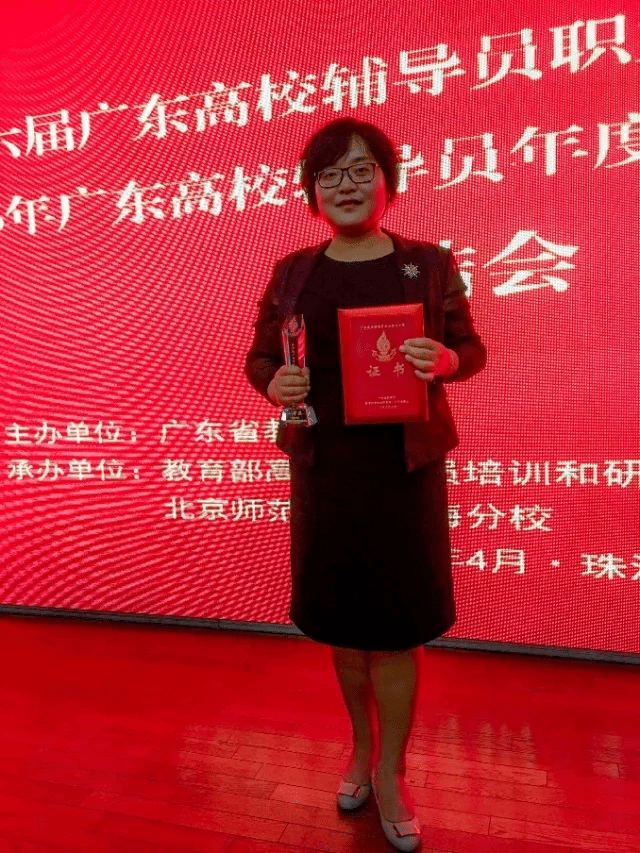 在工作中她总是带着问题意识进行工作、学习和研究立志做一名研究型辅导员。她作为教学骨干成员参与《职业生涯规划与就业指导》《大学生心理训练》等课程的教学工作,结合辅导员工作情况,顺利实现第一课堂和第二课堂的无缝对接。先后获得高级就业指导师、三级心理咨询师等资格认证。论文《大学城学生宿舍管理问题及对策初探》曾获全国高校学生工作优秀学术成果二等奖、论文《高校学生党建研究会的发展及对策浅析》获广东省高校党建研究会年会论文奖三等奖。