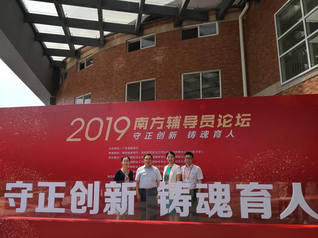 2019年6月14日,我校信息学院辅导员董婷、中文学院辅导员朱倩渝应邀参加了由广东省教育厅主办,华南农业大学承办的“守正创新,铸魂育人”2019年南方辅导员论坛暨2018年广东省高校辅导员年度人物颁奖典礼。广东省教育厅、海南省教育厅负责同志,有关高校领导,广东省各普通高校学生工作部部长,安徽、山东、湖南、广东四省高校思想政治工作队伍培训研修中心负责人及代表,安徽、山东、湖南、广东、海南五省骨干辅导员代表出席了本次论坛。论坛对广东高校辅导员2018年度人物进行表彰颁奖,我校党委常委、副校长刘海春出席会议并为获奖者颁奖。