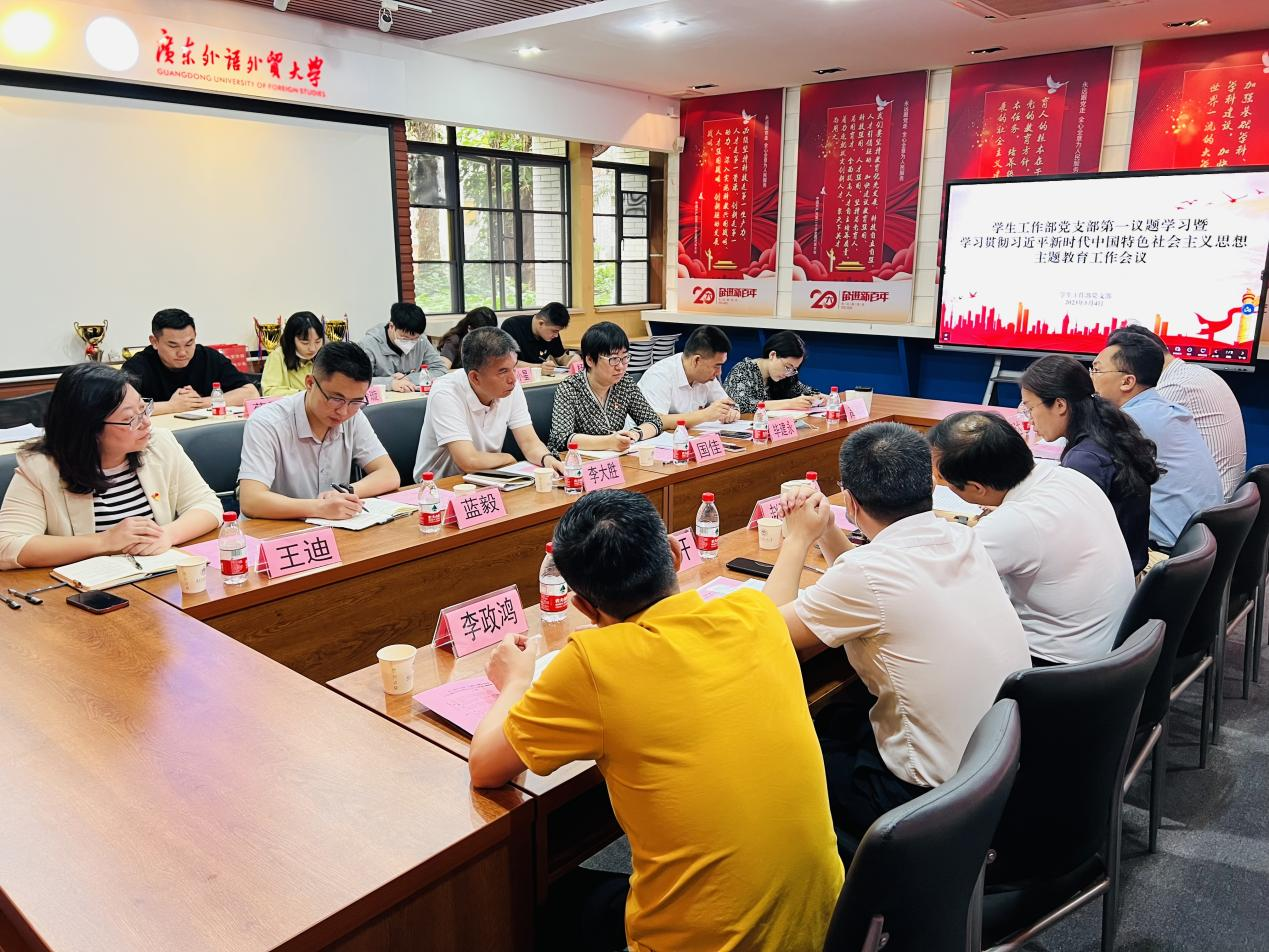 5月4日,学工部党支部在白云山校区六教B106会议室召开第一议题学习暨学习贯彻习近平新时代中国特色社会主义思想主题教育工作会。省委第二十巡回指导组组长李大胜、组员蓝毅出席会议。学工部党支部委员、学工部班子成员、学工部各科室负责人及学院学生工作负责人、辅导员代表参加会议。第一议题学习主题为深入学习贯彻习近平总书记关于教育的重要论述,推动学生工作高质量发展。