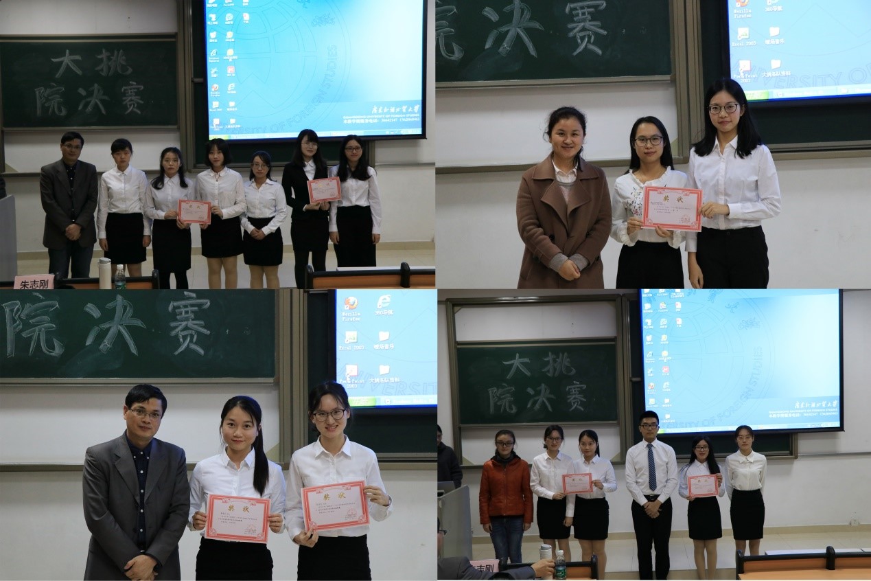 11月23日下午,中文学院在北校第七教学楼会议室举行了2017年“挑战杯”广外大学生课外学术科技作品竞赛院级决赛。本次决赛包括PPT展示与现场答辩两个主要环节,共有5支队伍参与展示。中文学院副教授朱志刚、讲师段莉及2017年国奖获得者闫郁文担任本次比赛的评委。