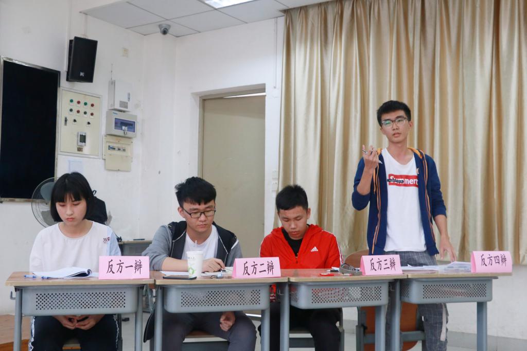 10月18日,会计学院团委学生会举办的第五届“新生杯”辩论赛复赛在F304、F305这两个课室正式开始。晋级的四支队伍再一次进行了激烈的角逐。公管学院辩论队队长翁森林同学,会计学院16级辩论队队长郭绮彤、何家俊同学,会计学院17级辩论队队长王舒琪、杨钰涵同学担任比赛的评委。