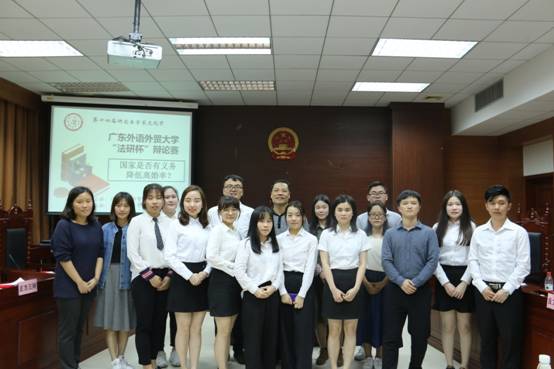 此次辩论赛以“国家是否有义务降低离婚率”为题,由法律硕士同学组成的正方“打完回家相亲队”和由法学硕士同学组成的反方“广外古美门队”,围绕辩题展开了激烈交锋。双方辩手围绕所学专业知识据理力争,场面十分热烈。正方认为婚姻具有社会性,基于社会稳定的考量,国家有必要降低过高的离婚率。而反方则坚持,降低离婚率并非国家的职责:国家有义务去倡导良好的婚姻观,而不是单纯地降低离婚率。国家应当透过离婚率的统计数据,挖掘深层次的社会问题并予以解决。