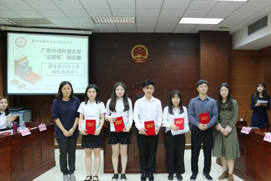 经过激烈的角逐后,最终正方赢得了本场辩论赛的胜利,正方四辩倪可媚同学荣获“最佳辩手”称号。法学院党委副书记刘军老师,为优胜队伍“打完回家相亲队”、“最佳辩手”倪可媚同学荣获颁发获奖证书和精美奖品,法学院国际法系杨幸幸老师和新闻与传播学院辅导员唐静颖老师,共同为优秀队伍“广外古美门队”颁发参赛证书和纪念奖品。至此,本次“法研杯”研究生辩论赛圆满落下帷幕。