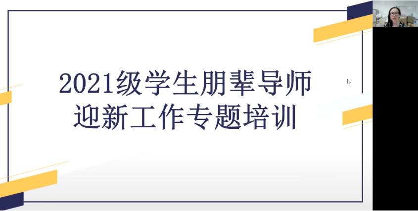 英文学院朋辈导师负责人官素馨同学提到,“本次培训会让我明白了朋辈导师的工作职责,在系统学习迎新知识和技能后,我对迎新工作有了更大的把握。”国关学院朋辈导师负责人李丹丹表示,“听了师长们的分享和讲解,我更加明晰朋辈导师的角色定位,也强烈感受到了朋辈导师肩上的重任,我将尽自己最大的努力做好迎新工作。”