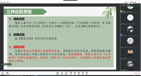 官超老师对还款计划变更操作、还款救助等展开了全面且细致的讲解。他指出,若贷款毕业生面临延期毕业、升学等特殊情况,可办理还款计划变更,保障助学贷款能持续助力其学业发展。