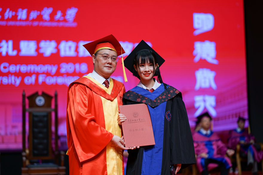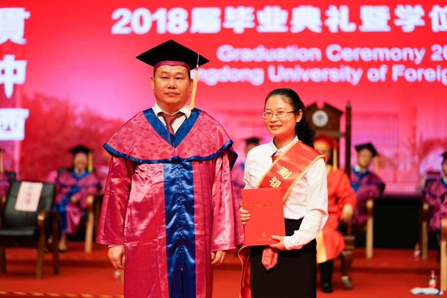 作为主礼教授的新闻学院李淑芳感触良多,她在广外已经工作了十几年,送走了一届又一届的毕业生,也见证了新闻学院的成长。当看到毕业学子努力了三年、四年或七年,今天领到了学位证书,她表示特别欣慰,也衷心祝愿毕业学子前程似锦。