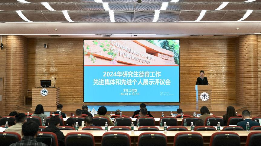 为进一步加强我校研究生德育工作,充分发挥先进典型的示范引领作用,我校于12月17日在白云山校区图书馆报告厅召开2024年研究生德育工作“先进集体”和“先进个人”展示评议会。学生工作部五级职员商杰强、机关党委六级组织员宾锐光、校团委副书记赵继伟、研究生院副院长张秀三、学生就业创业中心副主任李乐玲、组织部干部科科长欧阳秋景出席会议,各研究生培养单位德育工作负责人,研究生辅导员和学工部相关人员参加会议。