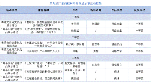 近日,由广东省教育厅组织,广东高校网络思政工作中心、广东高校易班发展中心举办的全省网络文化活动结果公布,我校7项作品在第九届网络媒体展示节获奖,其中一等奖2项,二等奖2项,三等奖3项;在2024年度广东高校易班优秀评选工作中,我校推荐案例《技术赋能“易”路相伴,“三径”融通思政育人》获2024年广东高校“十佳易班特色案例”,英文学院易班指导老师赵闪闪获广东高校“十佳易班辅导员”。