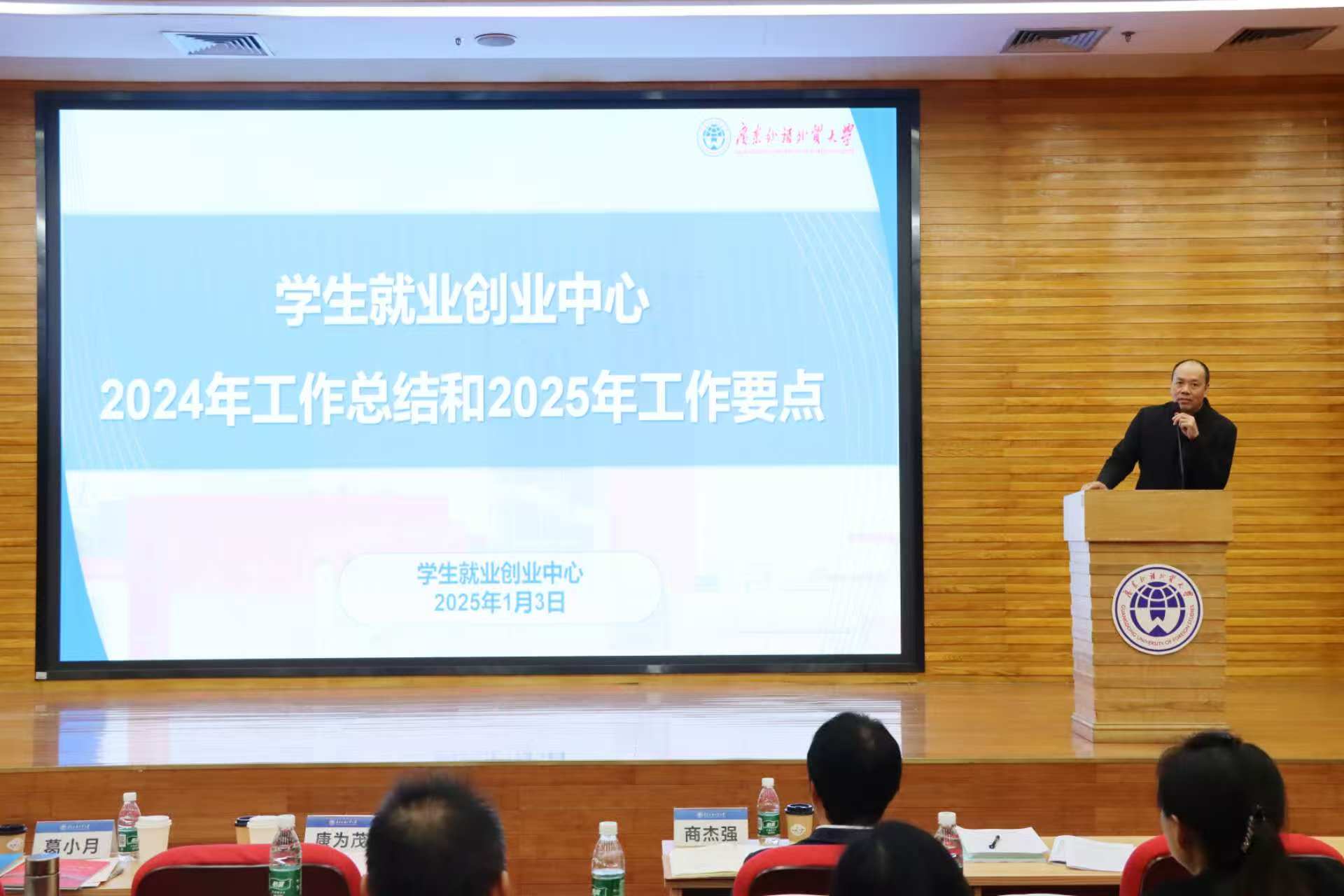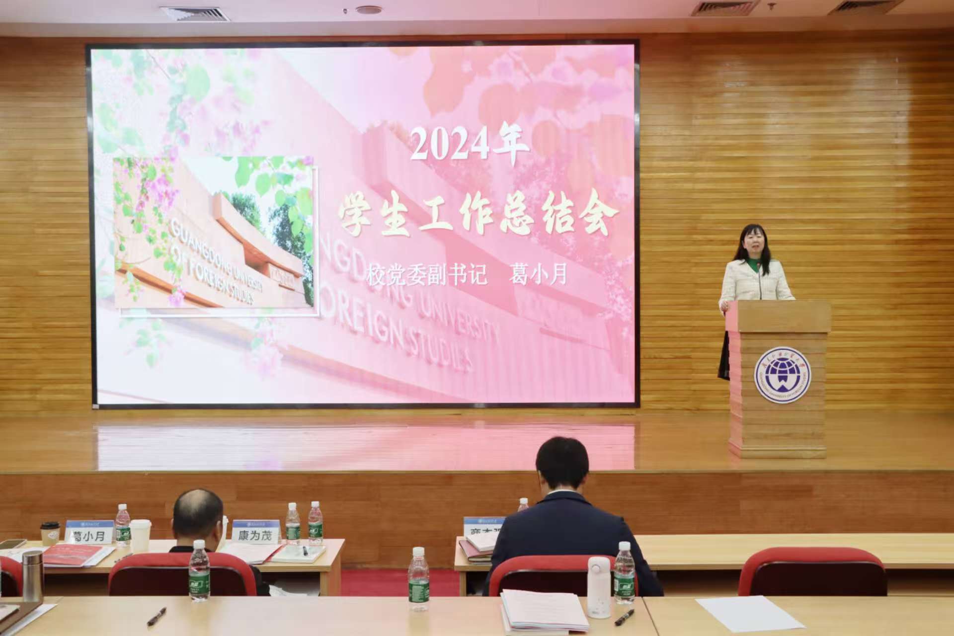 会上,校团委书记刘郎、学生就业创业中心主任康为茂和学生工作部五级职员商杰强分别总结了2024年度工作情况,并就下一年的学生工作做具体布置。刘郎从思想、科创、实践、文化、组织五个部分全面回顾了广外共青团的2024,并强调2025年将继续聚焦政治引领、强基赋能、全面发展、润心育人这五个关键领域,以推动全校共青团工作的高质量发展。