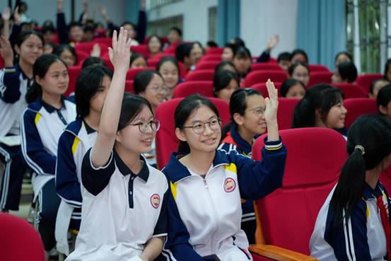 互动环节,宣讲团成员与现场师生进行积极的交流互动,现场气氛热烈。乳源高级中学的学生们围绕学业规划、职业发展以及个人成长等多个话题提出疑惑,主讲人一一耐心解答,学生们纷纷表示收获颇丰,内心感受到榜样学长学姐给予的温暖与力量。