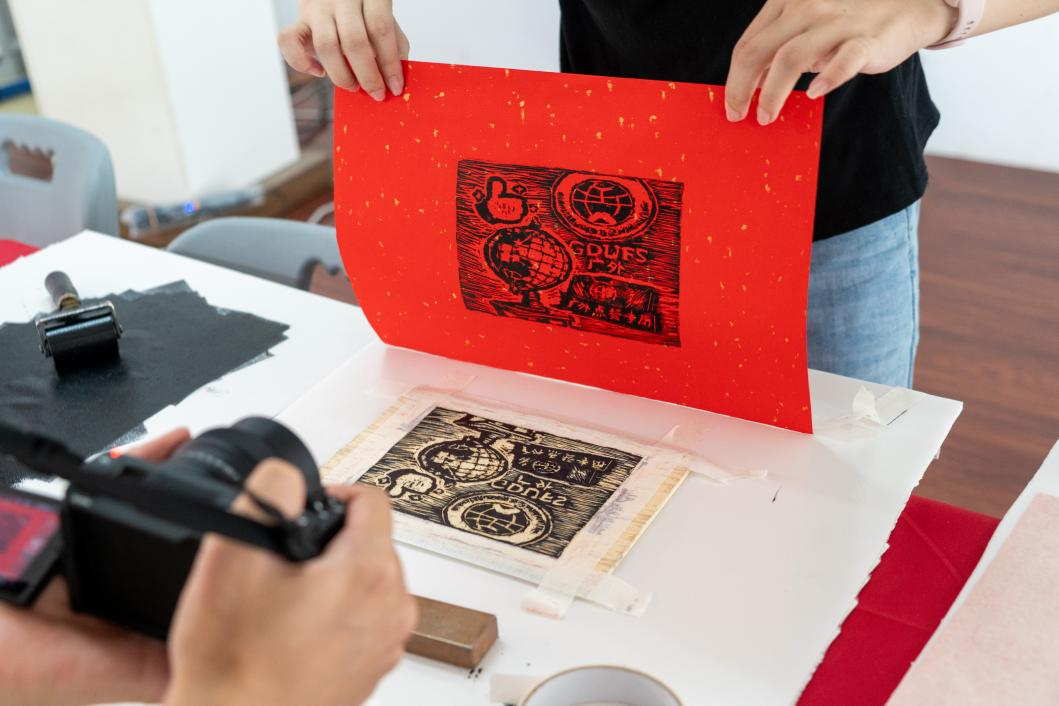 为庆祝学校建校60周年,2025年9月下旬至10月中旬,由学生工作部主办、“邻里力”学生社区辅导员工作室承办的“广外印象·版画非遗创作”活动成功举办。活动特邀广州美术学院罗海英副教授走进学生社区,带领学生原创广外主题木版画以献礼甲子校庆。