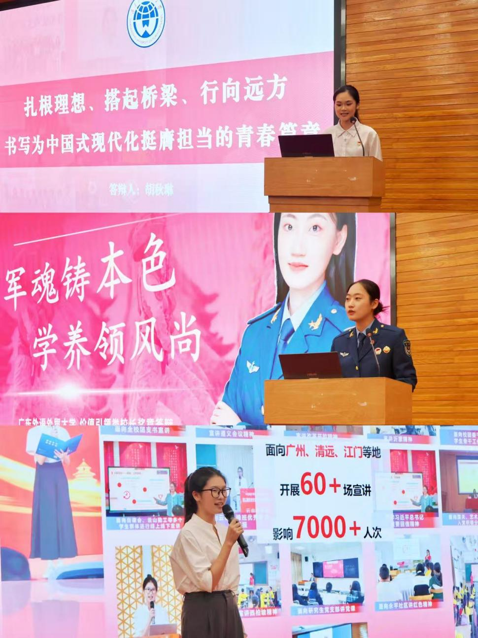 国际商务英语学院的胡秋琳作为中共党员5次参与“青马工程”,开展红色宣讲40余场覆盖超30万人,更凭专业第一绩点保研中山大学;会计学院的李冬薇曾服役空军参与重大演习获“四有”优秀士兵,入学后又斩获国家奖学金等荣誉;中国语言文化学院的谭秀薇作为省高校理论宣讲团成员,主持全国志愿宣讲项目覆盖超7000人次,事迹获30多个平台报道,尽显青年榜样力量。
