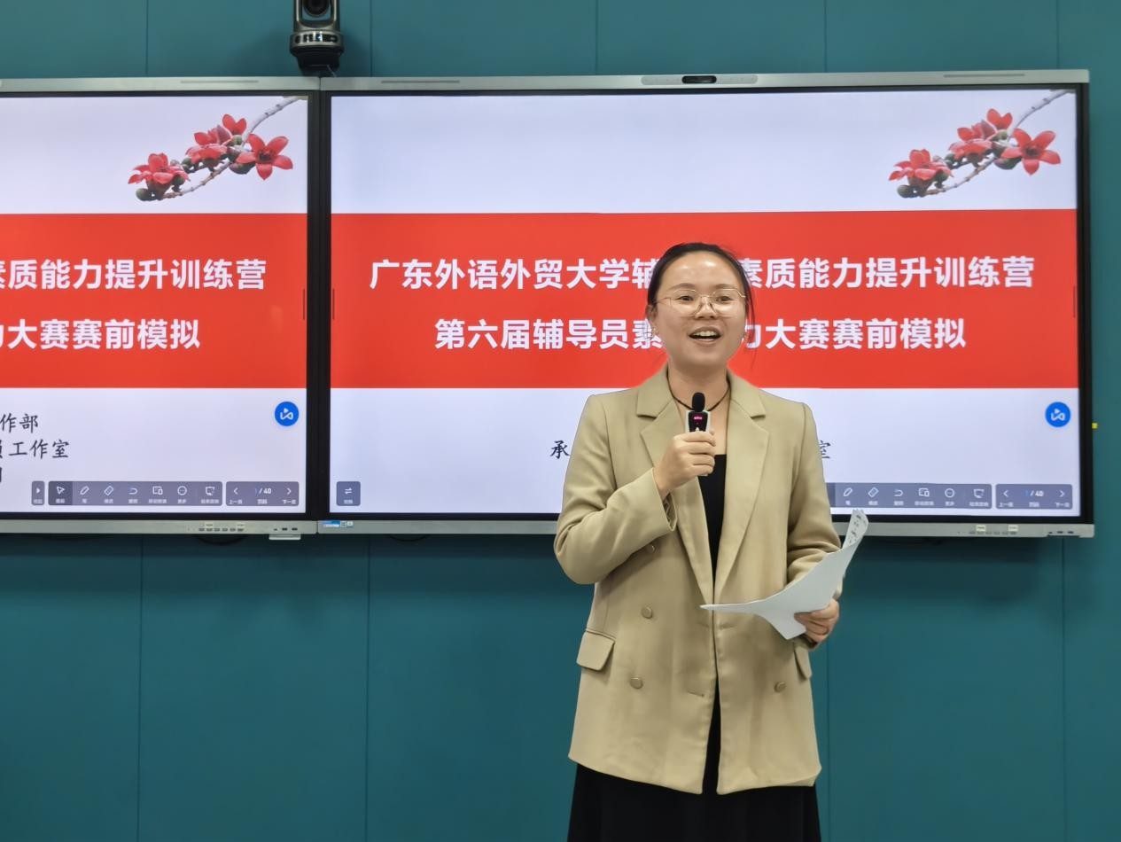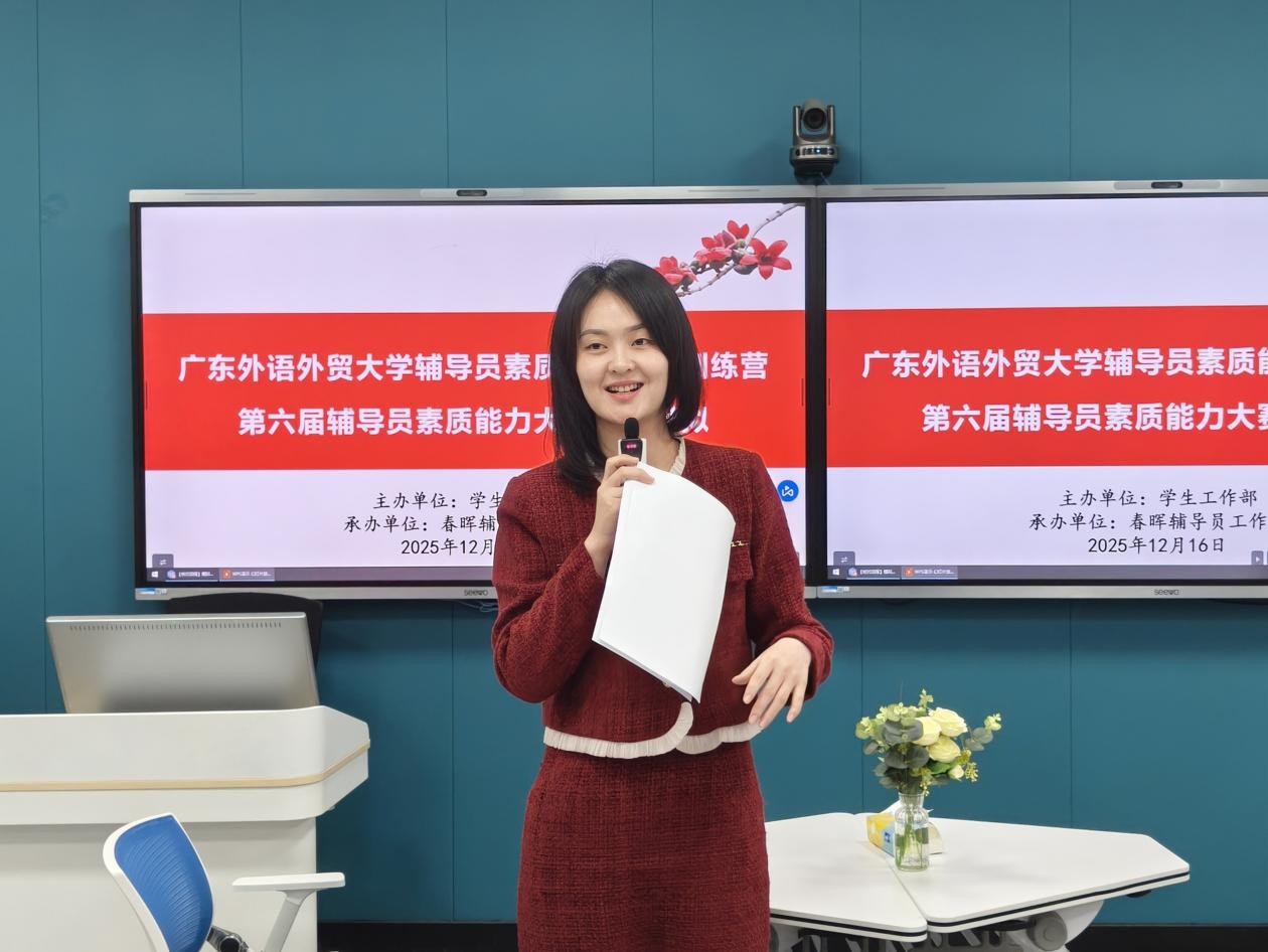 为深入推进我校辅导员队伍专业化职业化建设,实现以赛促建、以赛促练的目的,12月16日下午,辅导员成长计划第143讲暨素质能力大赛提升训练营在大学城校区教学楼G座211举办。训练营以案例研讨、谈心谈话模拟演练的方式进行,邀请广东高校辅导员年度人物、第八届省赛一等奖获得者暨南大学牛若曦与第十届省赛二等奖获得者广东工业大学何嘉欢受邀担任点评嘉宾。我校学生工作部副部长陈思,全体参赛辅导员参加活动。