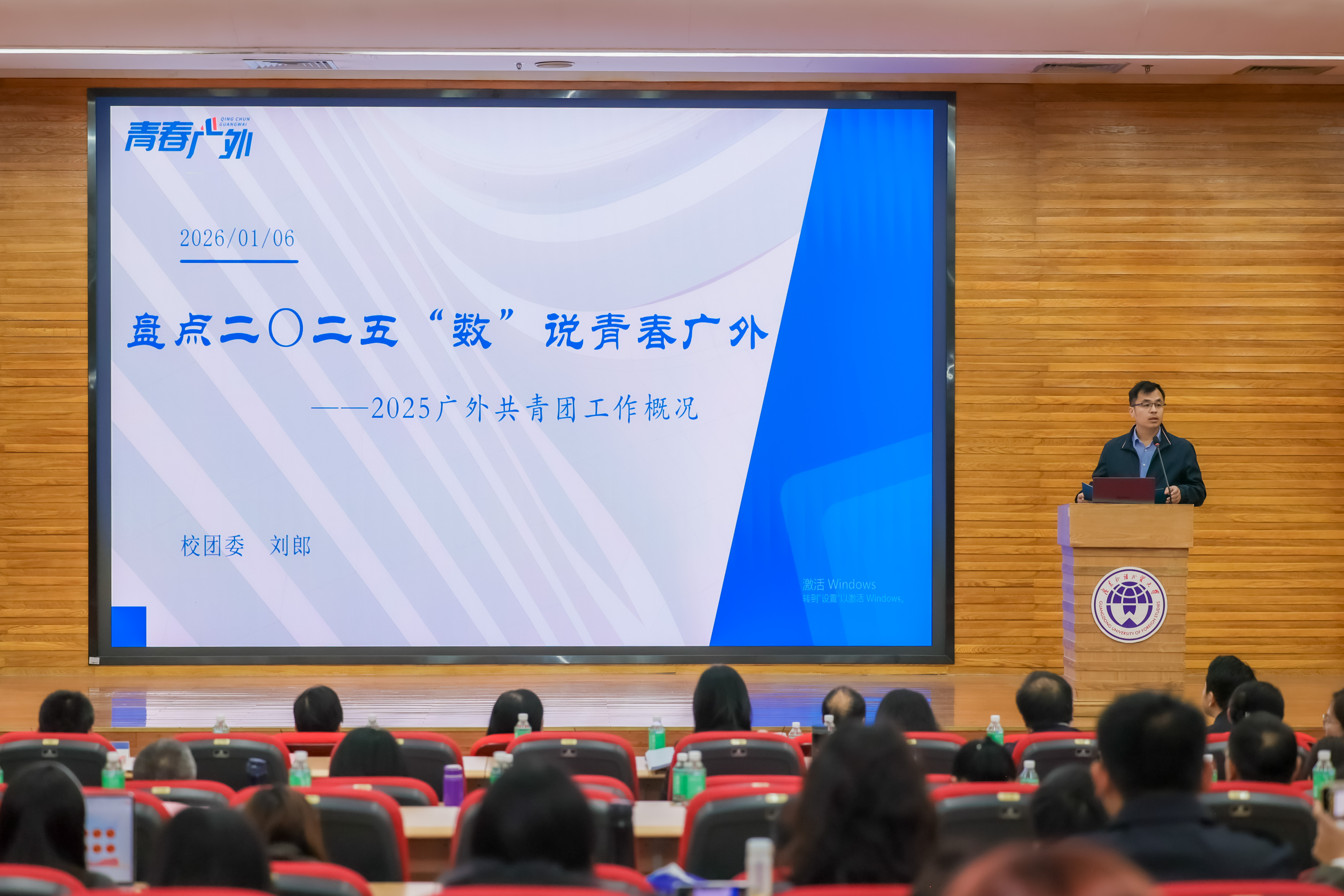校团委书记刘郎围绕“数”说青春广外主题,以“一心向党、十全十美、百炼成钢、千帆竞发、万众一心”的工作理念,围绕第十五届全运会和服务学校建校六十周年校庆两大重点任务,总结了在思想引领、骨干培养、校园文化、志愿服务、学术赛事等方面的扎实经验。