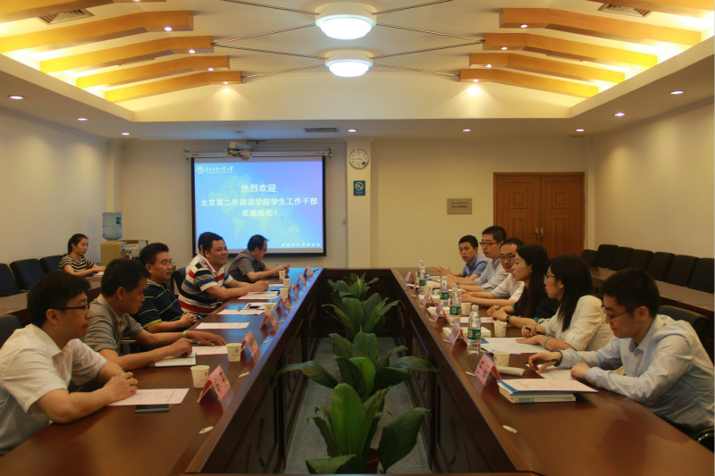 5月6日下午,北京第二外国语学院学生工作部(处)长王文静等一行六人来我校交流,并与我校学生工作干部座谈。在北校区行政楼第三会议室,我校学生工作部(处)长谢应东等七人参加了交流座谈会。双方就学生工作队伍建设等方面重要问题进行了交流。