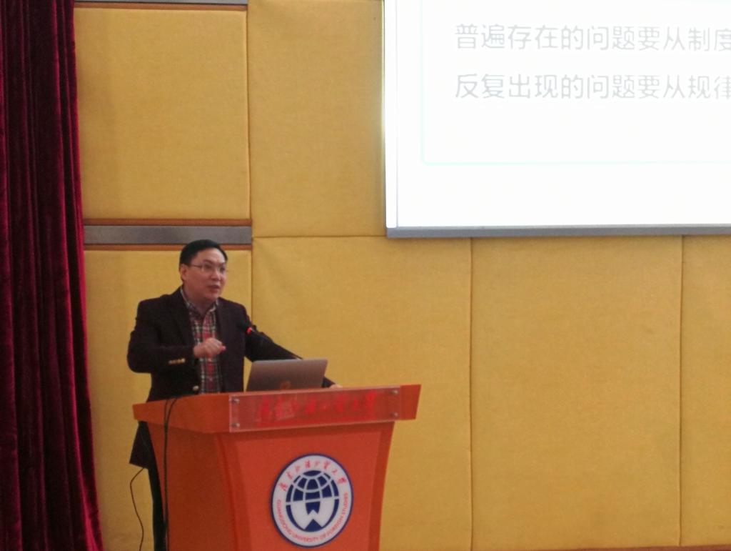 接着,教育部辅导员培训基地(华南师范大学基地)常务副主任魏则胜教授进行了题为《辅导员职业能力大赛的基本问题》的讲座。他指出要大赛的目的是为了加强辅导员队伍建设,推广优秀的工作经验,解决同质量的类似问题。同时他强调辅导员们要努力克服经验主义等的理念误区,要注重专业知识重构和价值观重构,并加强理论修养,促进科研能力提升。