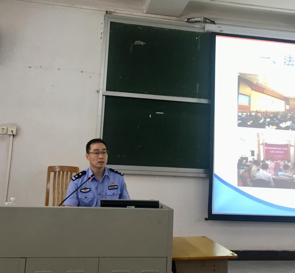 宫朋队长为大家宣讲《境外非政府组织境内活动管理法》