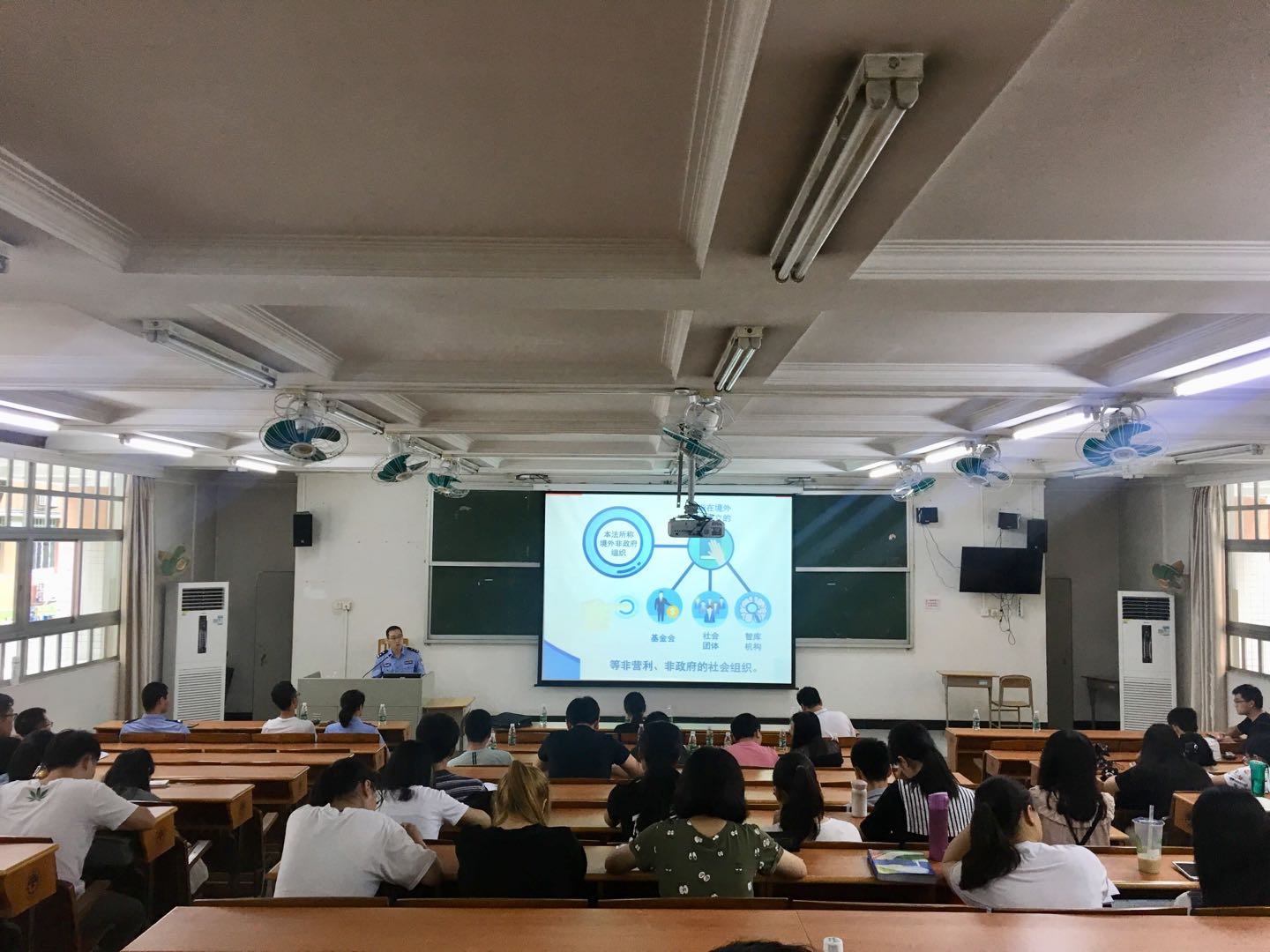 2018年6月7日下午,《境外非政府组织境内活动管理法》宣讲活动在北校区第二教学楼116举行。本次活动特别邀请了广州市公安局境外非政府组织管理办公室大队长宫朋作为主讲嘉宾。广州市白云公安分局国保大队长刘志强、学生工作部(处)副部(处)长刘军、保卫处相关老师、辅导员代表以及各学生社团组织的负责人参加了本次活动。活动由刘军主持。