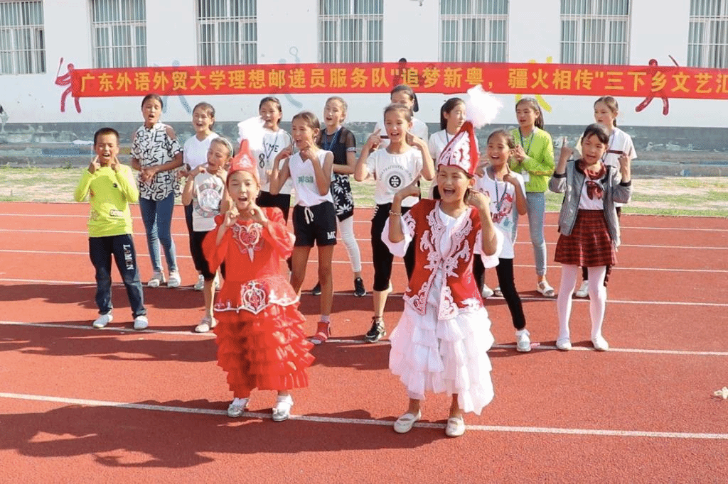 下午6:00,新疆少数民族学生理想邮递员服务队“追梦新粤,疆火相传”三下乡文艺汇报演出在新疆塔城地区裕民县阿勒腾也木勒乡牧业中心校精彩上演。阿乡中心校党委书记哈德列提·伙依别克、我校新疆家访小组全体成员以及当地学生家长观看了此次汇演。