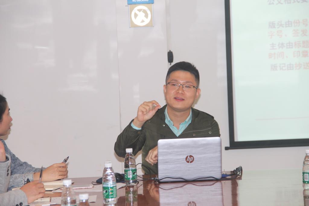 培训会上,张博深入浅出地将理论联系实践,紧扣“公文文种、格式、要素”和“学校新《公文处理办法》”两个部分做详细讲解,并结合自身丰富的写作实践,以通俗易懂的语言,形象地向大家介绍了公文写作的必备技巧。