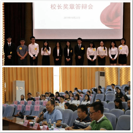 答辩会包括个人或集体代表展示、评委提问两个环节。各类别的“校长奖章”候选人预备人选汇报了在不同领域获得突出成果,展现出广外学子奋发有为,卓越致远的精神风貌。申报学术科研类“校长奖章”的商学院庄美儿以第一作者身份发表5篇三类以上论文,其中一篇被国际EI数据库收录和检索,她的认真与拼搏得到了在场评委的高度赞许;数学与统计学院的黄茂湘在CSSCI期刊上发表了三篇学术论文,并积极参加各类学术赛事,取得丰硕成果;东方语言文化学院徐洋通过层层角逐,战胜来自世界各地优秀学子获得2018首相杯国际马来语演讲比赛冠军,事迹受到马来西亚国家电视台的报道;“广州新河浦历史文化街区文化保育研究”项目团队将文化传承作为团队的发展目标,获得了第十五届“挑战杯”广东大学生课外学术科技作品竞赛特等奖;申报价值引领类“校长奖章”的新闻与传播学院王明哲则关注乡村振兴与精准扶贫,多次带领团队奔赴偏远乡村开展调研,发表多篇农村研究论文,曾获评2018年广东大学生年度人物,并成功保研至中国社会科学院大学农业经济管理专业;申报社会实践类的广外国际刑事法院中文模拟法庭赛队在2019年国际刑事法院中文模拟法庭比赛中获得一等奖的好成绩,他们的努力,让世界看到广外学子的卓越风采;“小鹿萌妈声学计划”项目团队作为创新创业类的代表,以所学专业为起点,结合广外的学科特点组建创业团队,让中国古代文学经典焕发新的生机活力;申报自强不息类“校长奖章”的李娜妮同学在逆流中突破困境,用拼搏书写青春,她用自己的经历告诉在座的同学贫困不可怕,可怕的是以此限定自己,止步不前,因为自强不息、阳光自信,李娜妮荣获2018年中国大学生自强之星;申报才艺兼备类“校长奖章”的商学院李欣不仅运动特长特出,同时学习成绩特别优异,曾获评国家奖学金,并多次取得广东省大学生田径比赛第一名的好成绩。