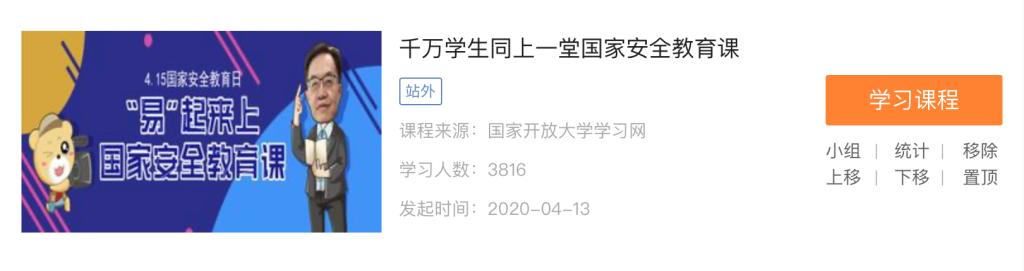 4月15日上午,由教育部组织录制的“千万学生同上一堂国家安全教育课”在多个网络平台发布。我校学生工作部(处)在国家安全教育日来临之际,为加强学生思想引领,充分发挥网络育人功能,将课程视频设于广外易班“九个易之‘易’同战疫”优课课群中,组织全校师生共同聆听学习这堂意义深刻的安全教育课。