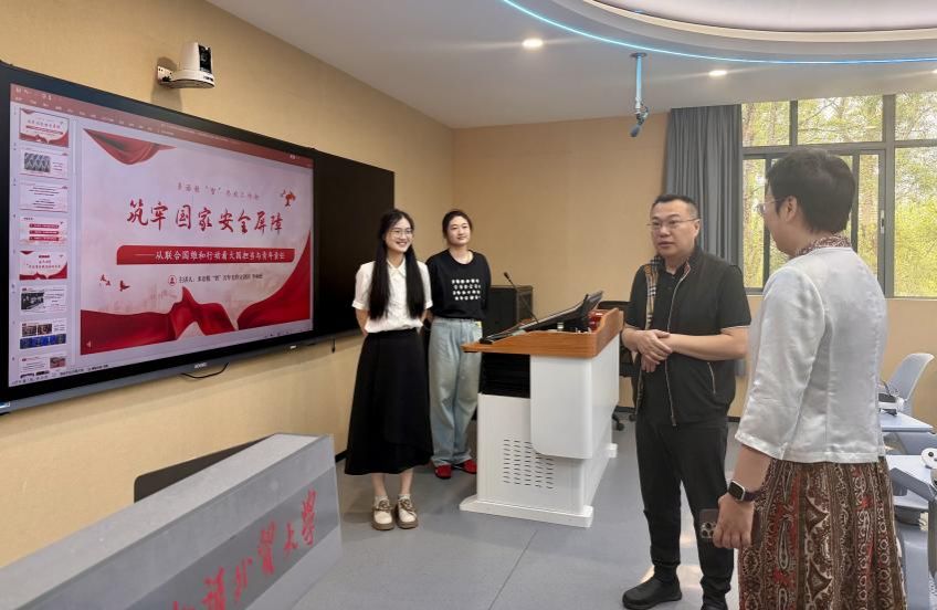 4 月 8 日上午,英文学院党委和学工部党支部、云山勤工党支部、学生社区党支部在白云山校区虚拟仿真实验室,联合开展 “筑牢国家安全屏障——从联合国维和行动看大国担当与青年责任”VR 思政党建共建专题学习。活动以总体国家安全观为引领,创新运用 VR 技术,引导党员强化国家安全意识、践行青年使命担当。
