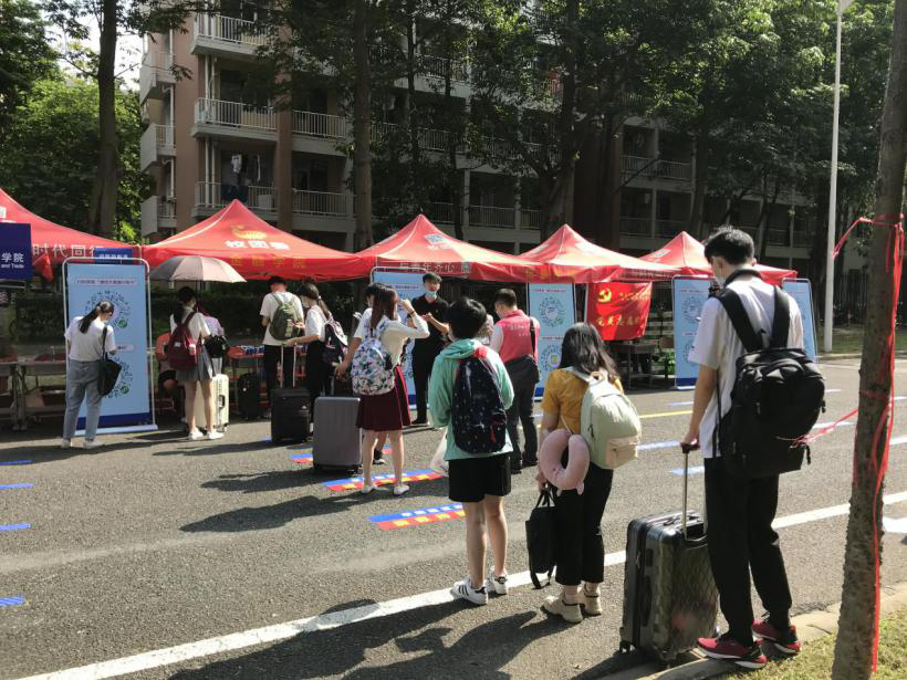 返校现场,学生处认真统计并提供精确的学生返校各类数据至保卫处,为学校返校工作提供高效便捷的数据支撑。学生处、保卫处、后勤处、各学院学生工作负责人和辅导员们在校门口迎接返校的毕业生。毕业生抵达校门口后,在工作人员引导下,经过行李消杀、更换口罩、测量体温、健康扫码、核实身份、返校确认等流程后前往学生宿舍楼。各环节分工明确,现场秩序井然,随着毕业生的归来,沉寂已久的校园再次焕发出青春的活力与生机。