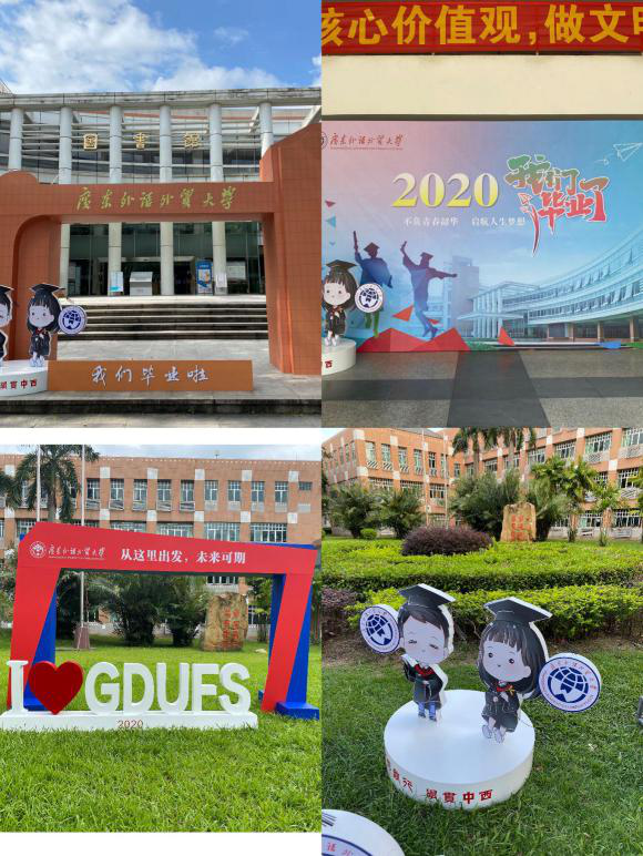 作为最特殊的一届毕业生,学校始终牵挂着同学们,为他们精心提供了系列暖心服务。校园内,布置了有纪念意义的毕业“打卡点”“I ❤ GDUFS”,毕业生可以借用学士服,在返校时留下专属影像,给毕业生留下最难忘的毕业记忆。