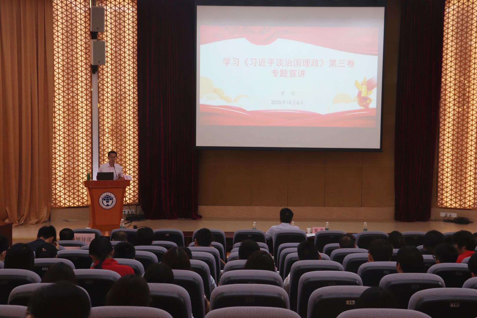 10月6日上午,学生工作部(处)在南校区八角楼学术报告厅举行第29期“学工有约”活动,邀请马克思主义学院曾荣教授作学习《习近平谈治国理政》第三卷专题宣讲。
