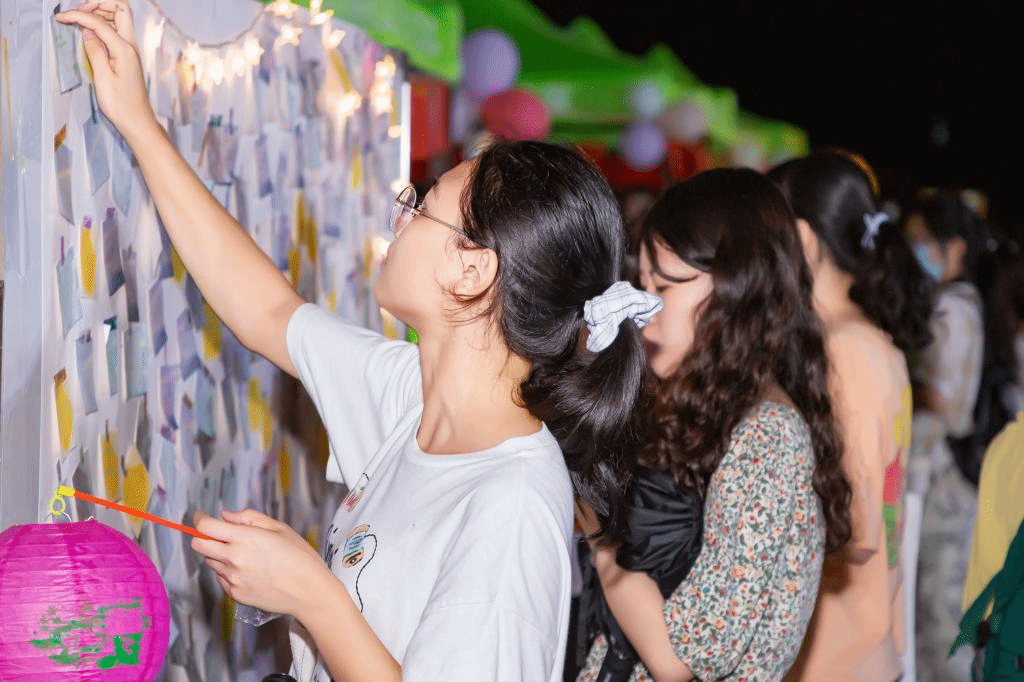 游园活动内容包括中秋灯谜荟、青春告白祖国、汉服文化体验、许心愿·寄思念、趣味活动和文艺表演。学生们通过猜灯谜,回顾中国历史、地理、文化、时政知识,感受中秋传统文化和家国情怀;通过“我和五星红旗合张影”“爱国主义歌曲大合唱”,为学生进行一场生动的爱国主义教育;通过现场试穿汉服,感受中国传统服饰之美;通过动手制作灯笼和月饼,加深对传统节日的感悟;通过趣味活动和文艺表演营造热烈愉快的节日气氛,激发大家的团队合作意识和创意思维。