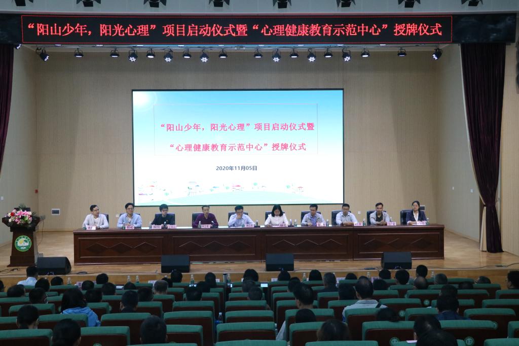 11月5日,“阳山少年,阳光心理”项目启动仪式暨“心理健康教育示范中心”授牌仪式在阳山县黄埔学校举行。阳山县副县长林怡,阳山县教育局副局长何立育,广东外语外贸大学学生处处长谢应东,驻蒲芦洲村第一书记林安杰等出席活动,全县各中小学校长、各学校相关处室负责人、各学校专兼职心理教师参加培训。