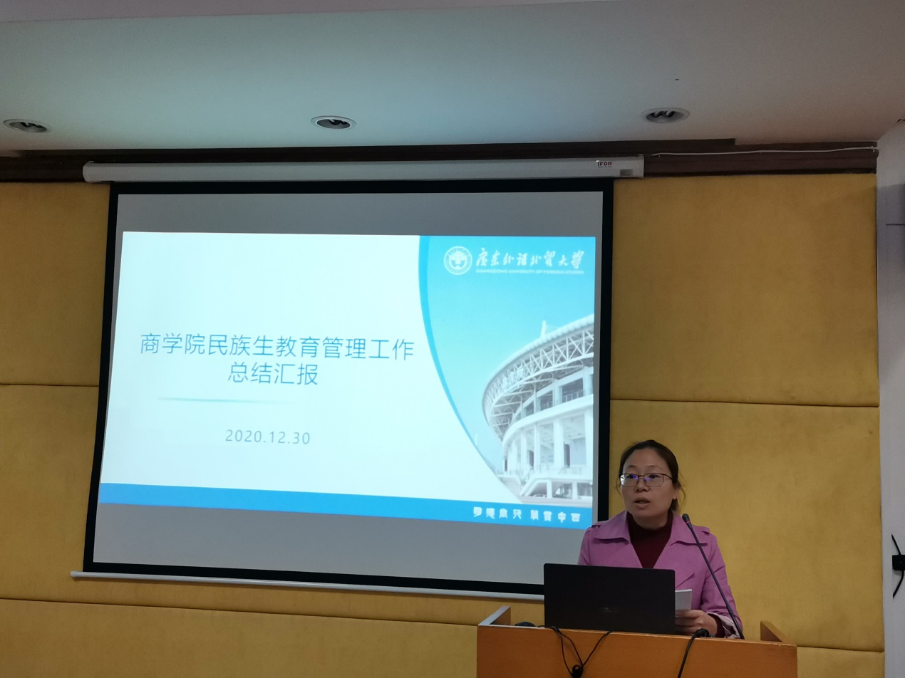 总结会上,商学院与法学院也分享了日常教育管理中的有效举措,商学院强调了民族生工作重点是加强辅导员与学生的关系,做到“一加一大于二”的效果;法学院则分享了他们在工作过程中发现的难点与破解困境的关键点,重视在交流过程中找出学生的闪光点并加以鼓励。同时,经贸学院缪冠中、法学院陈宇两位辅导员,结合民族生日常工作,分享了他们在民族生工作培训上的学习心得和工作思考。