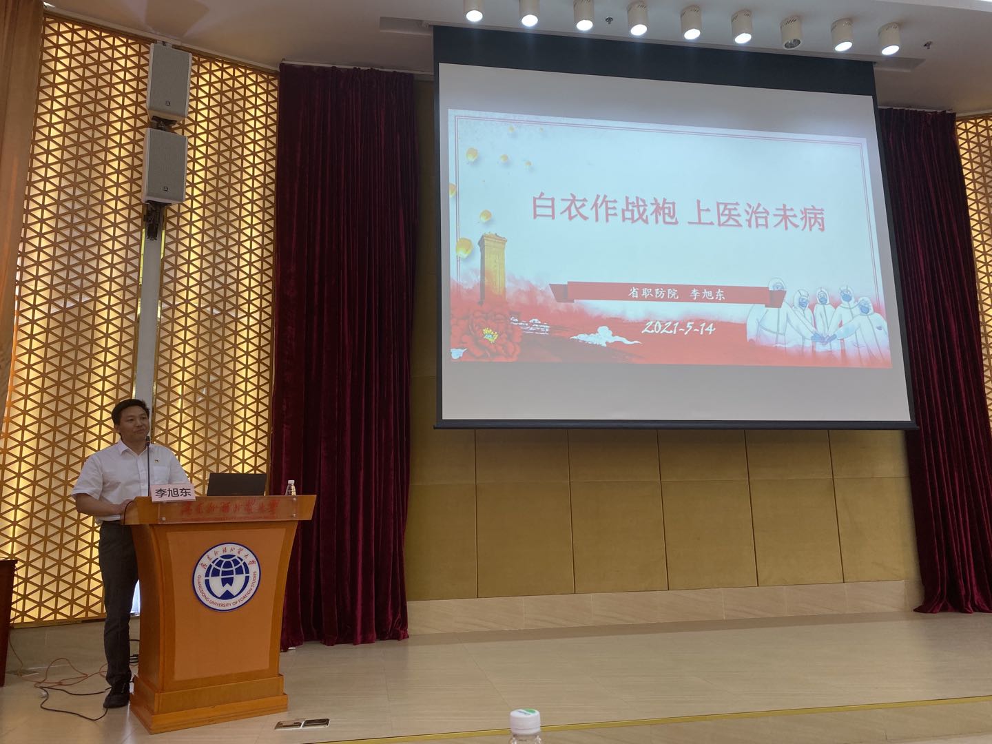 5月14日下午,广东省职业病防治院副院长、广东支援湖北荆州医疗队疫情防控组副组长、广东省抗击新冠肺炎疫情先进个人李旭东医生在南校区八角楼为学生做专题讲座。