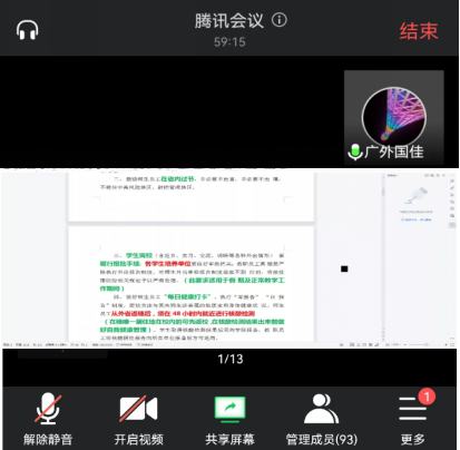 会上,“我在校园”数智化研究中心工程师黄允泰为全体学工干部开展“我在校园”小程序操作及应用的培训。他深入介绍了“我在校园”日常管理功能含请假、通知、签到等,以及疫情防控管理功能含离校、返校、健康打卡、日检日报等,会上并对各位老师提出的有关问题进行解答。