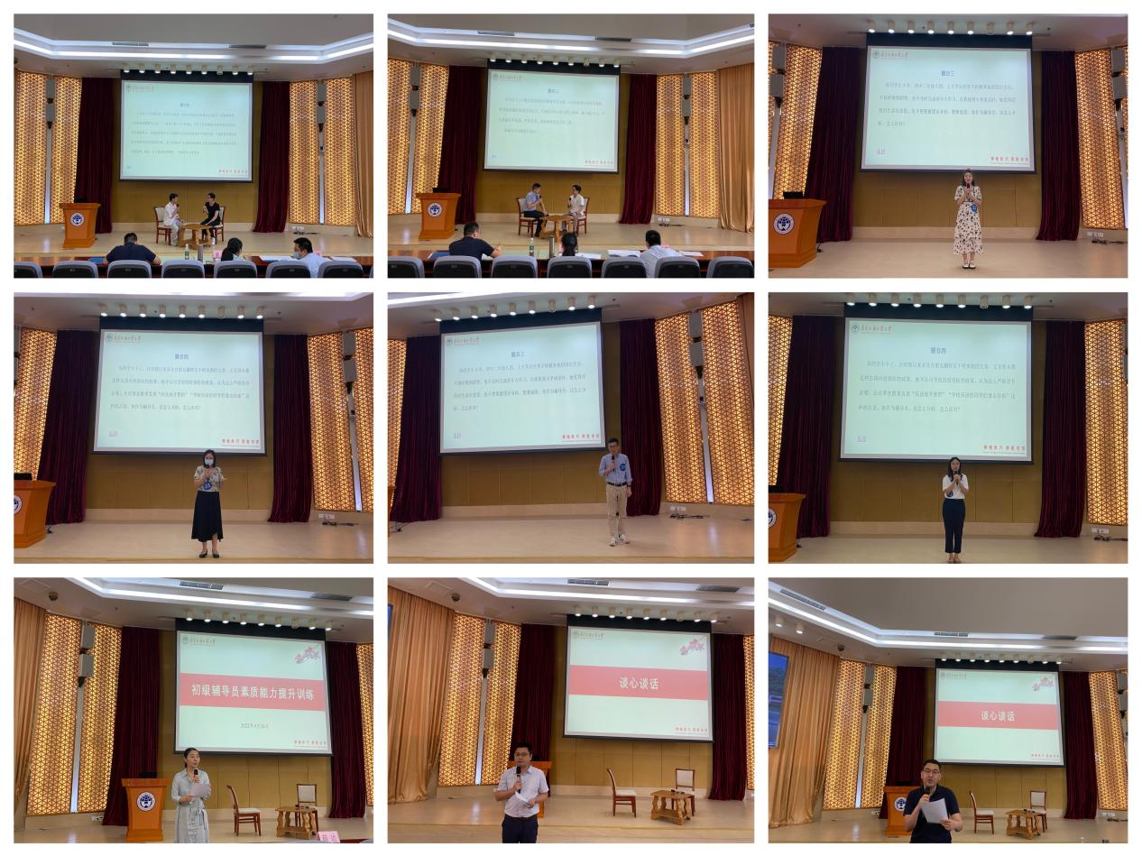 本次训练设案例分析和谈心谈话两个环节,旨在考察各辅导员理论学习能力、思想引领能力、语言沟通能力和解决问题的能力。此次训练中,各辅导员结合具体情境,综合运用实际工作经验和理论知识,展现了我校辅导员良好的精神风貌和出色的工作素养,进一步推动我校辅导员队伍专业化、职业化建设。