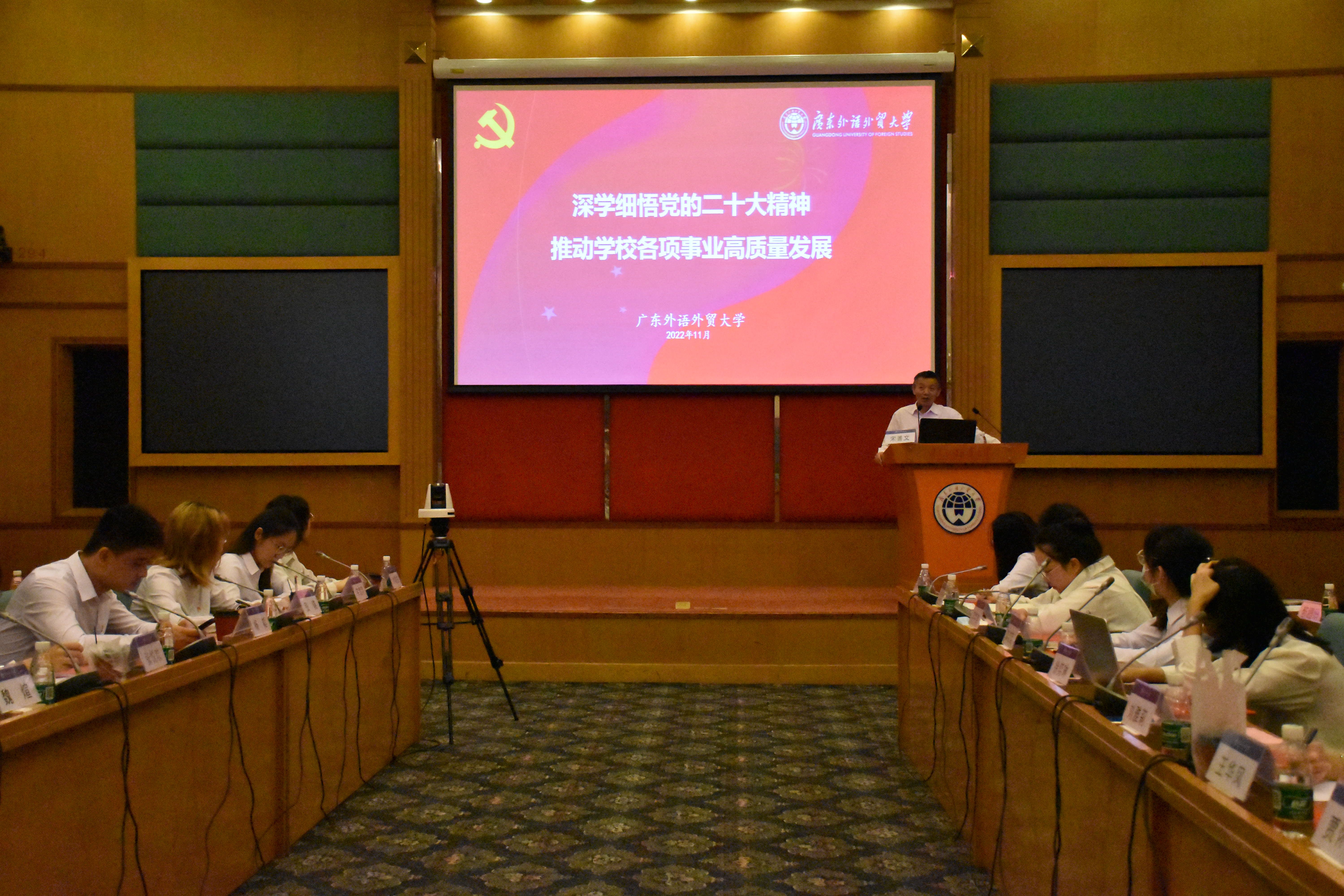 仪式结束后,马克思主义学院宋善文教授、张剑抒教授分别为白云山校区、大学城校区、知识城校区宣讲团成员及全体学工干部作党的二十大精神专题备课指导。