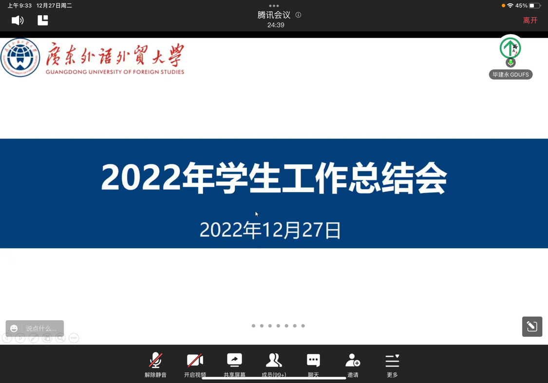 12月27日,我校召开2022年度学生工作总结会线上会议。校党委副书记唐锐出席会议,学生工作部、校团委、学生就业创业中心全体人员,各学院以及科研机构分管学生工作负责人,全体辅导员参加总结会。会议由学生工作部副部长毕建永主持。