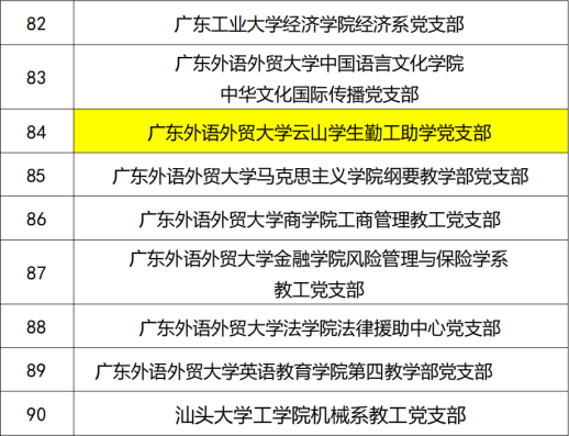 广东外语外贸大学云山学生勤工助学党支部(以下简称“云山勤工党支部”)经资格审查、专家评审、省委教育工委会议审议、结果公示等程序, 获评第四批“全省党建工作样板支部”培育创建单位。