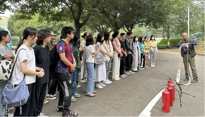 4月7日下午,保卫部张雪老师在大学城校区给同学们开展“防范灾害风险,护航高质量发展”消防安全知识培训专题讲座。保卫部徐铭老师向同学们讲解了不同灭火器的应用场合,介绍了灭火器的具体组成部分,并向大家讲到灭火器使用的详细步骤。同时,组织同学们在图书馆进行了逃生演练及灭火器实操培训。