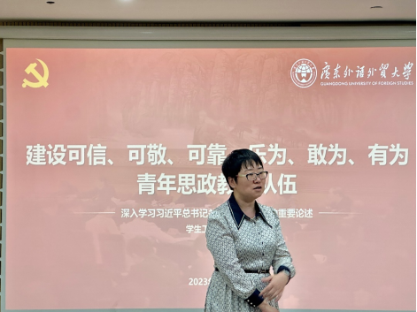 5月23日下午,辅导员队伍深入学习贯彻习近平新时代中国特色社会主义思想主题教育在白云山校区一教109时代讲堂举行,学生工作部部长国佳以“建设可信、可敬、可靠,乐为、敢为、有为的青年思政教师队伍”为主题进行领学主讲,全体一线专职辅导员参加学习。会议由学生工作部副部长叶开主持。