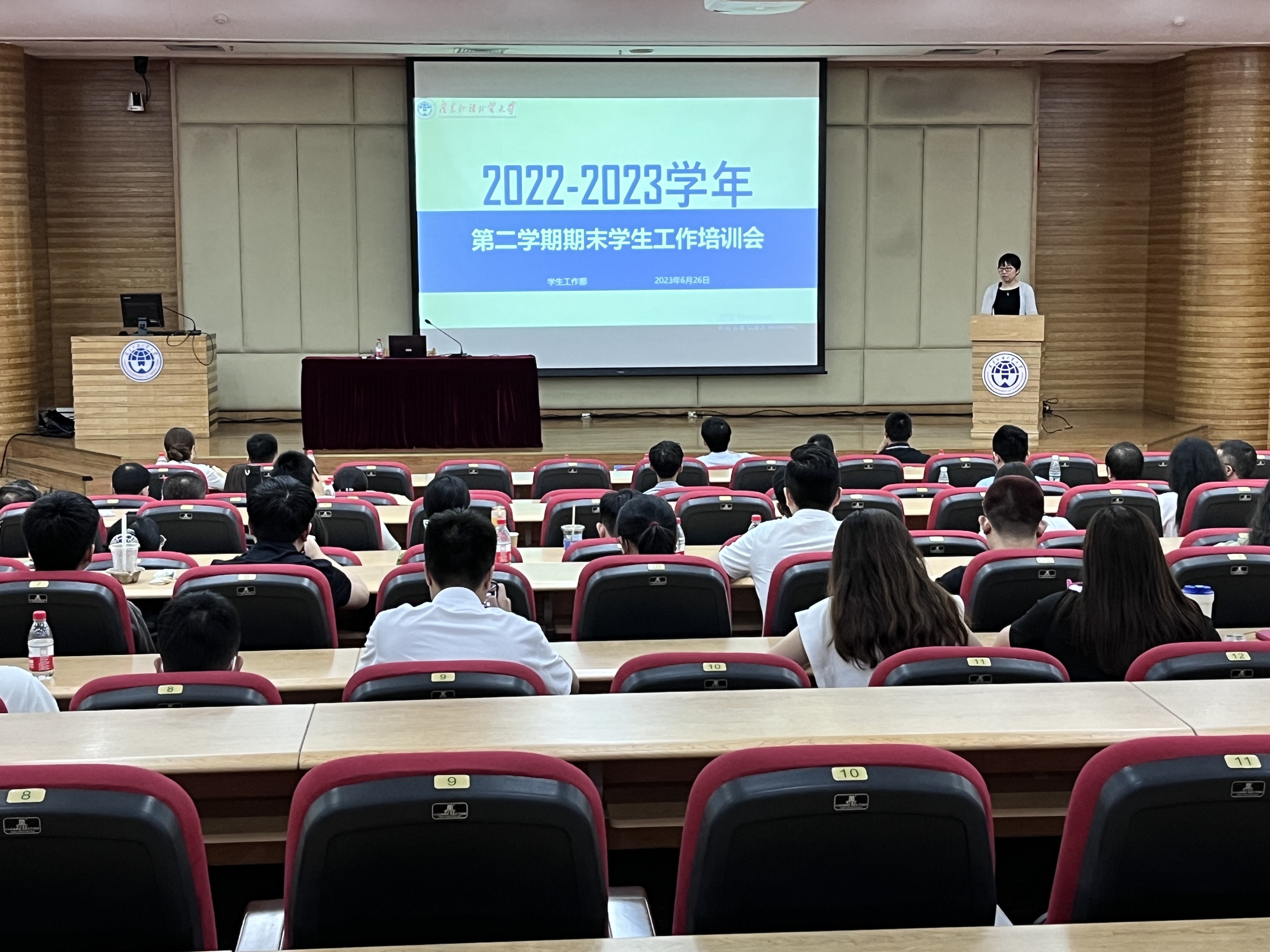 6月26日上午,我校2022-2023学年度第二学期期末学生工作总结会暨学生工作培训会在白云山校区图书馆报告厅组织召开。学生工作部、校团委、学生就业创业中心全体人员,各单位分管学生工作负责人以及全体辅导员参加会议。会议由学生工作部部长国佳主持。