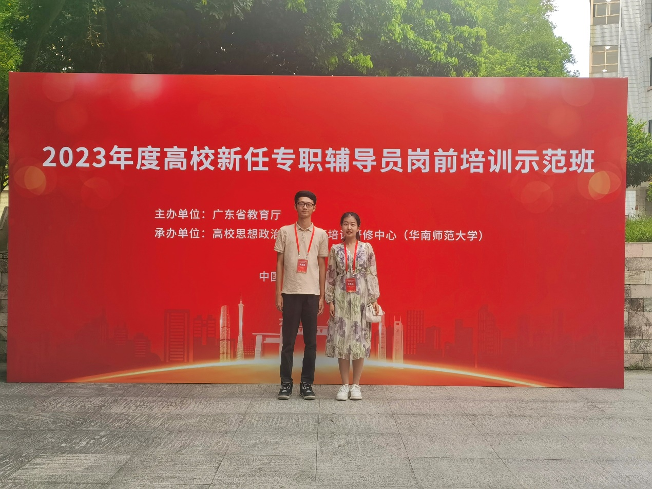 7月22日-25日,由广东省教育厅主办、高校思想政治工作队伍培训研修中心(华南师范大学)承办的2023年高校新任专职辅导员岗前培训示范班顺利举行,我校辅导员冯迪南、王智聪参加培训。