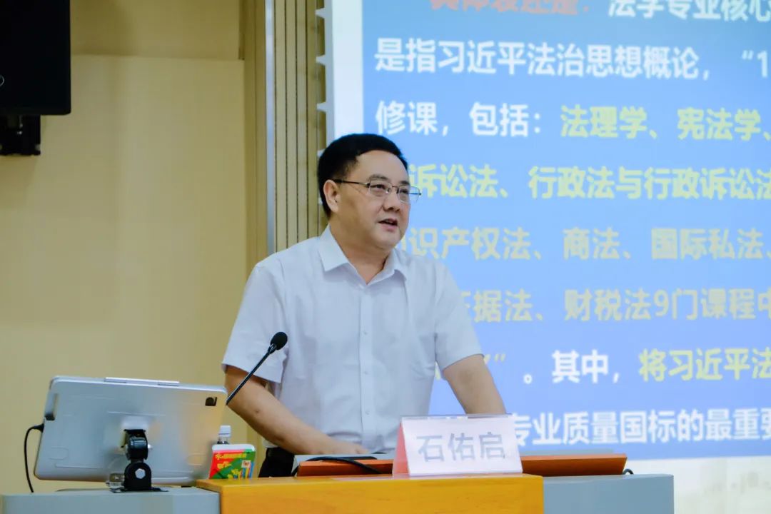 9月12日晚,校党委书记、校长石佑启聚焦“学习贯彻习近平法治思想,深入推进全面依法治国”主题,在白云山校区第一教学楼时代讲堂开讲新学期书记校长“思政第一课”。